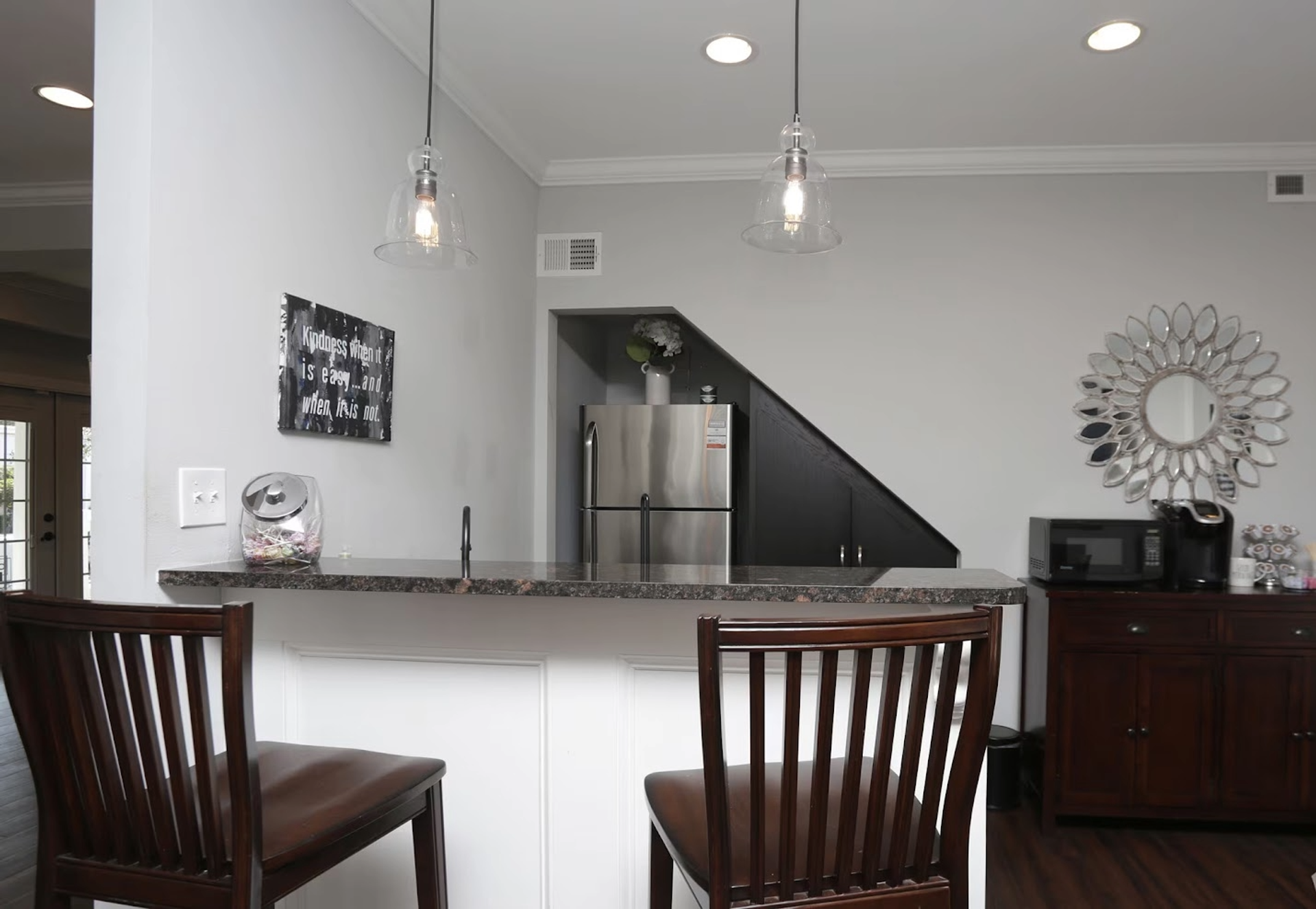 This 1 bedroom, 1 bathroom apartment offers an expanded 743 square feet of living space, providing a more open and comfortable layout within Broadmoor Apartments. The larger floor plan allows for a spacious living area, perfect for entertaining, working from home, or relaxing. The bedroom features a walk-in closet, offering generous storage and added convenience. An open concept living room creates a seamless flow throughout the unit, enhancing natural light and overall functionality. The apartment is equipped with upgraded appliances, delivering a modern look and reliable performance for everyday living. With its increased square footage and thoughtfully designed layout, this unit is ideal for residents seeking extra space while enjoying the same quality features throughout the community.